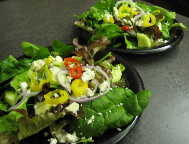Serve over fresh greens garnished with red onion, cucumber, and Feta cheese. Top with Cucumber Sauce.